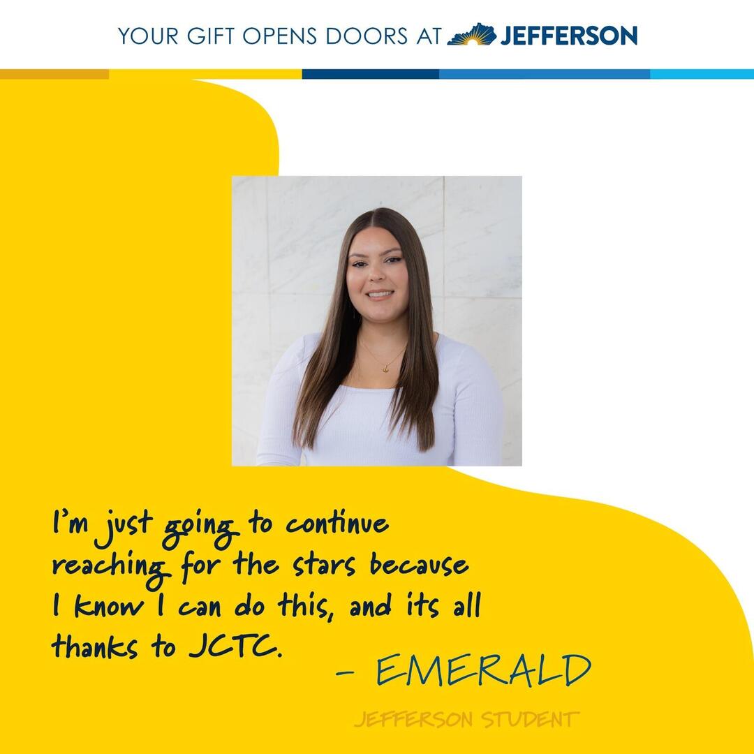 Your generosity expands access, fuels excellence, and builds a stronger future for our region. Make your gift today and help Jefferson students thrive.